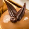 Biscuit Sacher au chocolat 70%. Crémeux au chocolat noir 66% Caraïbe. Fine feuille de chocolat craquante. Compotée de griottes cuisinées au Kirch. Mousse légère à la vanille. Griottes entières au sirop. Glaçage au chocolat noir 72%. Décor : feuilles d’automne en chocolat et petites griottes au sirop.