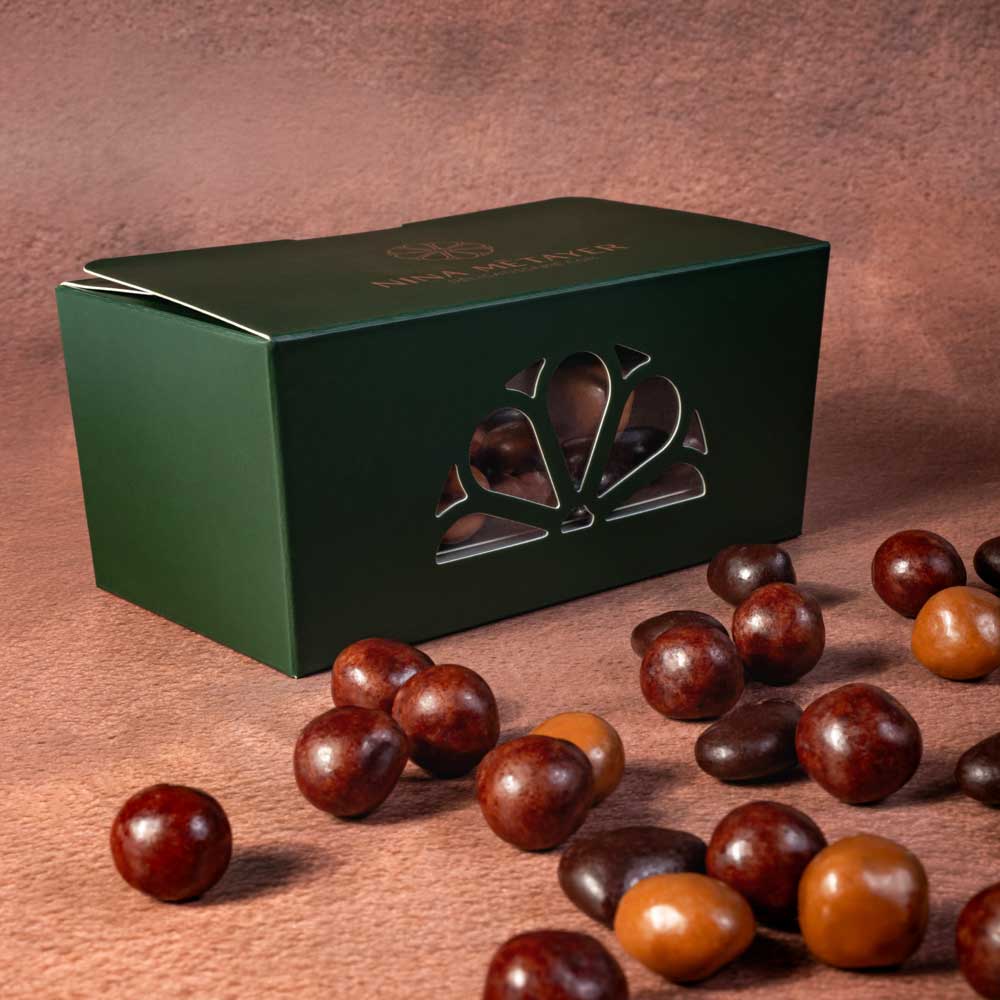 Des noisettes à l’enrobage lacté, des amandes au chocolat noir et des petites billes de caramel enrobées de chocolat caramélisé : voici les douceurs à croquer sans modération de cet assortiment qui l’on aime offrir aux gourmands.