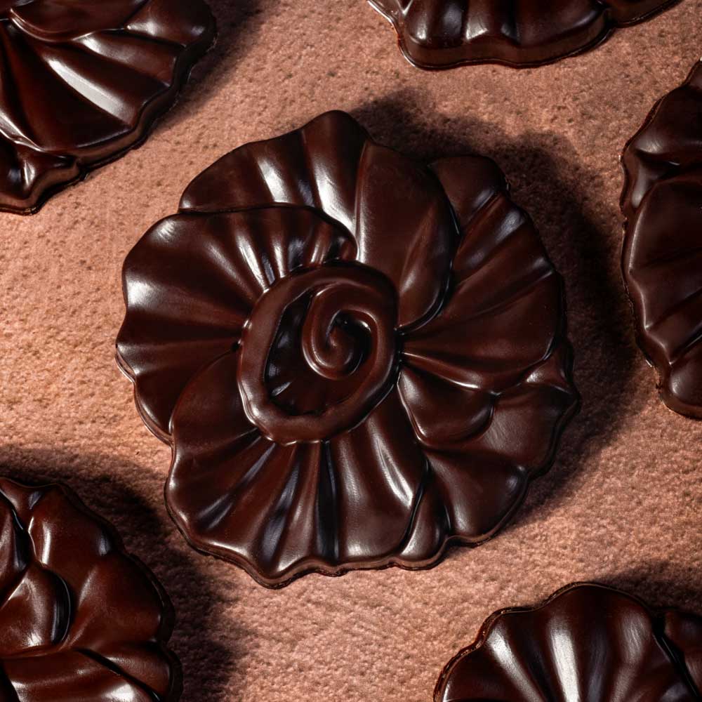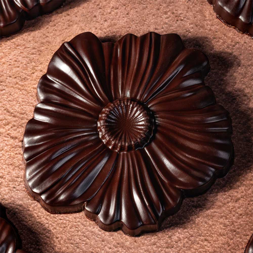 L’élégance d’un motif floral, toute la gourmandise enfantine du chocolat au lait ou du caramel et des jeux de texture pour le plus grand plaisir des petits comme des grands gourmands.