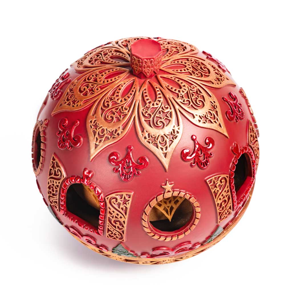 La Boule de Noël : entremets pour 10 personnes et chocolat à partager. Environ 2,4kg (1,5kg de chocolat), 22cm Ø x 24cm.
